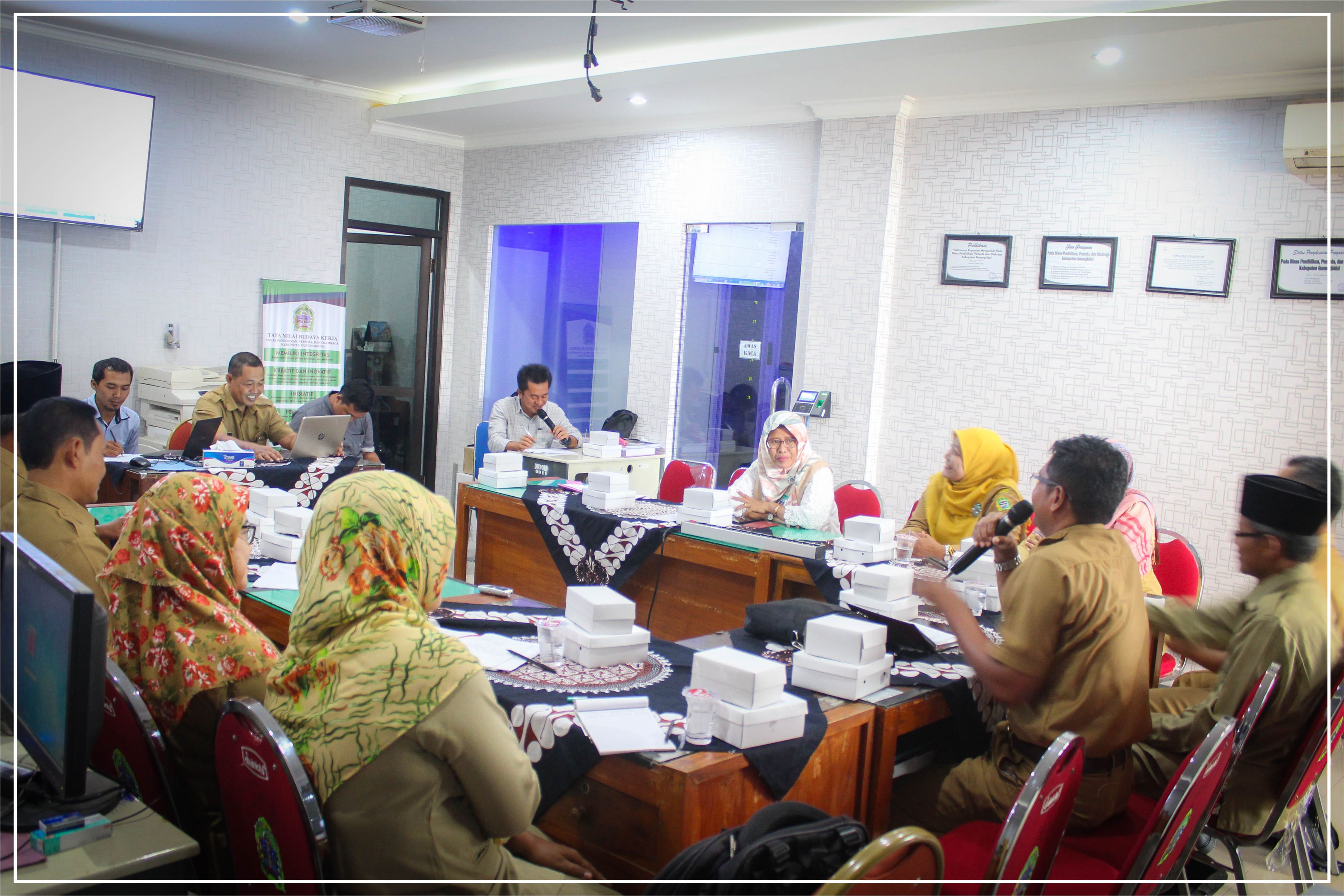 Senin, 21 Januari 2019 pukul 13.00 WIB, bertempat di Ruang Laboratorium Komputer / Subbag Perencanaan, Dinas Pendidikan, Pemuda, dan Olahraga Maksud dan tujuan FGD antara Dinas Pendidikan, Pemuda, dan Olahraga Kabupaten Gunungkidul dengan The World Bank ini adalah untuk mengumpulkan Sebelum memasuki acara utama, kegiatan ini dibuka dengan doa bersama dan perkenalan diri dari masing-masing peserta. FGD ini dibagi Sesi berjalan selama 2 jam dan diskusi berlangsung secara menarik. Peserta berpartisipasi aktif mengikuti alur topik yang ditentukan. Seluruh rangkaian